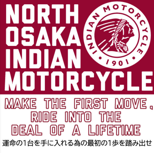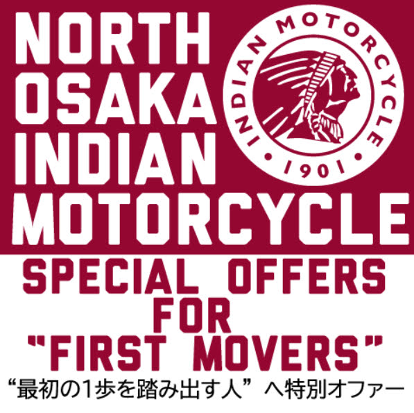 『NORTH OSAKA INDIAN MOTORCYCLEプレオープン』に合わせて、店頭では「プレオープン記念”インディアンご購入サポート”」を行います(*´Д`)