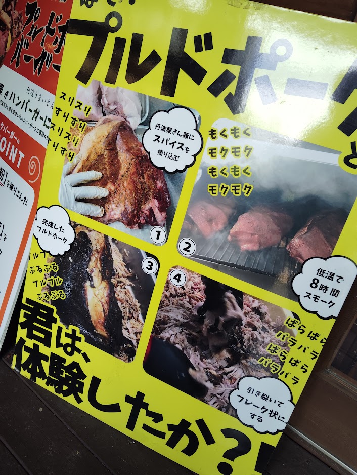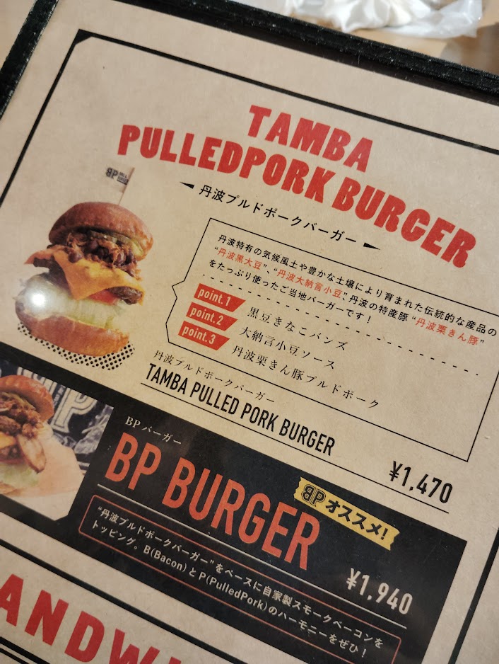 私が注文したのはお店の名物「丹波プルドポークバーガー」。