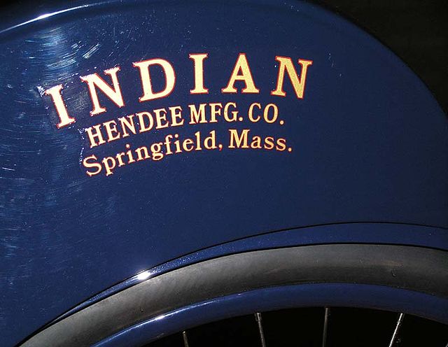 INDIAN の下に”HENDEE MFG.CO.”=当時の会社名”ヘンディーマニュファクチャリングカンパニー”、その下に”Springfield,Mass”=本拠地である”マサチューセッツ州のスプリングフィールド”と冠されています。