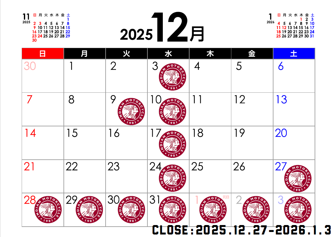 ってな訳で、あっという間の2025年、12月の営業日カレンダーですΣ(゚Д゚)